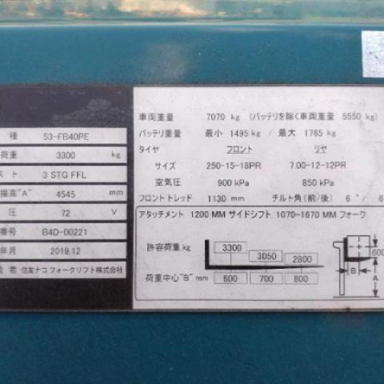 Xe nâng điện Sumitomo 53-FB40PE là loại xe nâng hạng nặng (kiểu ngồi lái). Xe có khả năng nâng mạnh mẽ lên đến 4,0 tấn, biến nó thành một cỗ máy mạnh mẽ cho các hoạt động công nghiệp trong nhà cần nâng vật nặng mà không gây ra khí thải như động cơ diesel.
